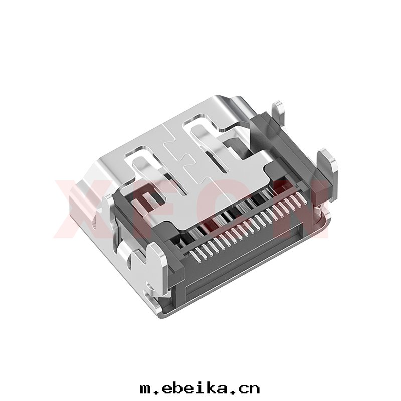 描述:HDMI-19pin,母座,铜(tóng)殼(ké)镀鎳,四(sì)腳(jiǎo)插,SMT