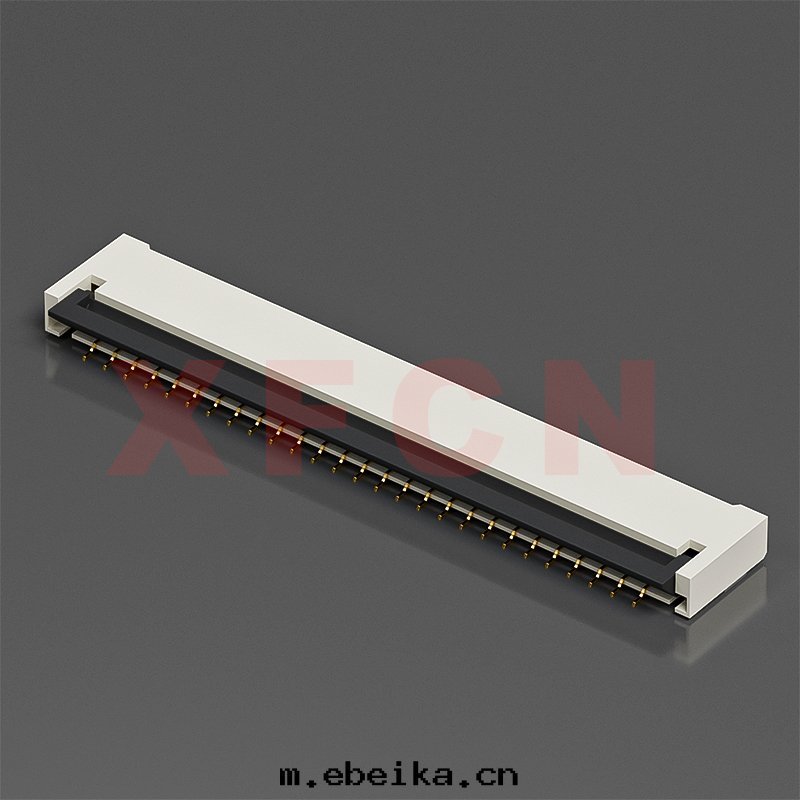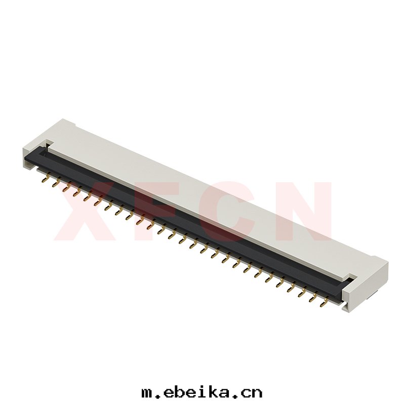 描述:FPC-1.0mm間(jiān)距,卧貼後(hòu)壓式双(shuāng)面(miàn)接,27位,高(gāo)度(dù)2.0mm,镀金(jīn)