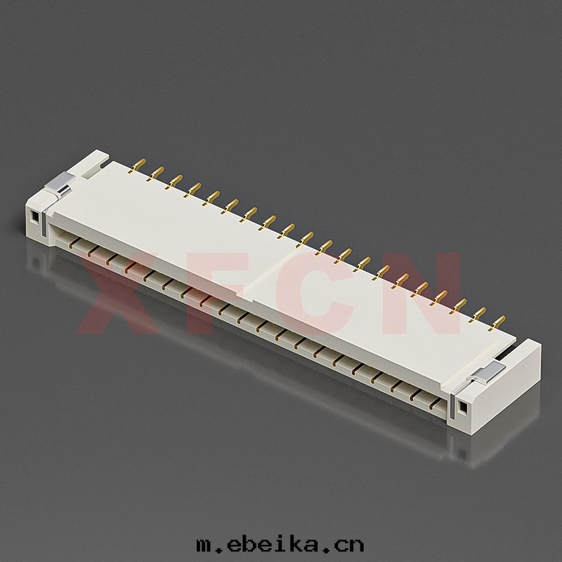 描述:FPC-1.0mm間(jiān)距,卧貼後(hòu)壓式双(shuāng)面(miàn)接,20位,高(gāo)度(dù)2.0mm,镀金(jīn)