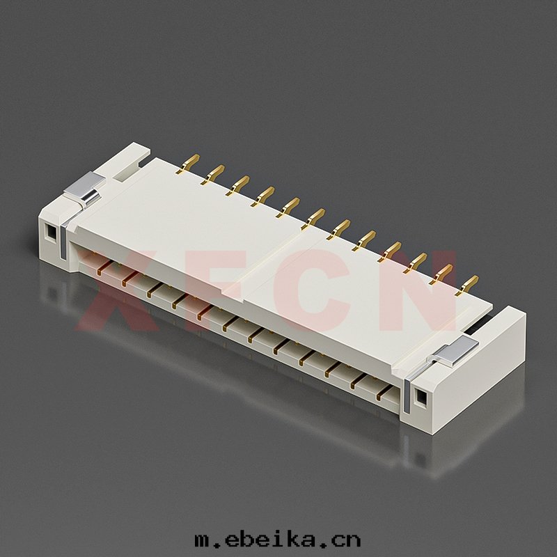 描述:FPC-1.0mm間(jiān)距,卧貼後(hòu)壓式双(shuāng)面(miàn)接,12位,高(gāo)度(dù)2.0mm,镀金(jīn)