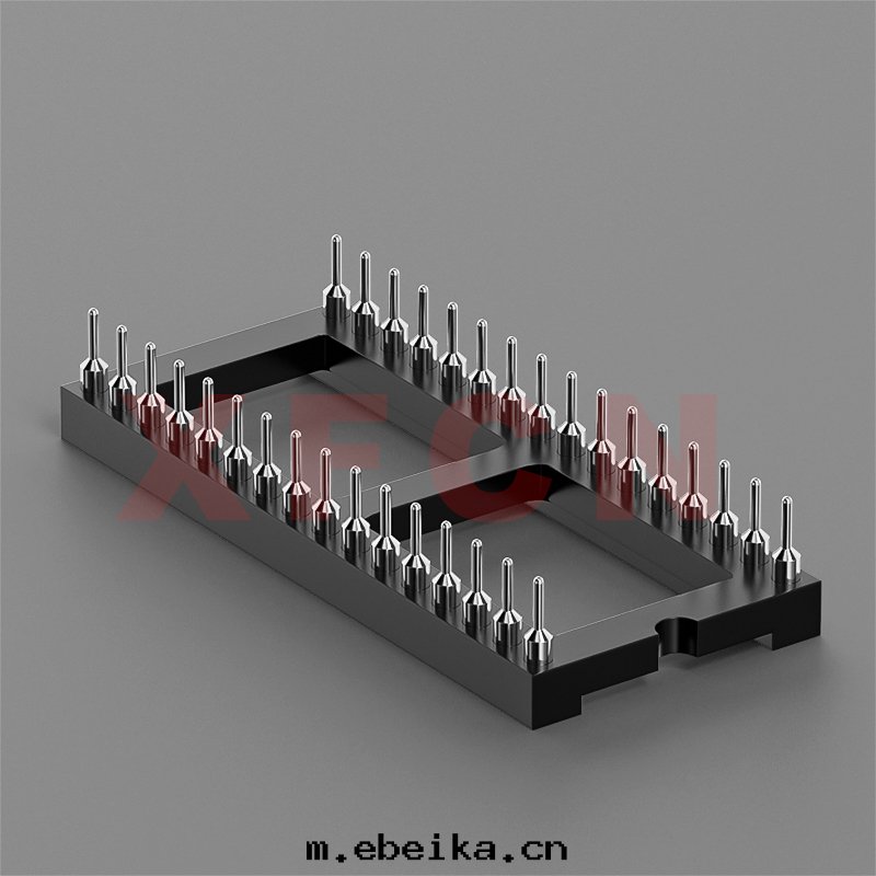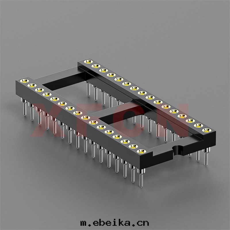 描述:IC插座-2.54mm間(jiān)距,180°,DIP,32位,双(shuāng)排母座,L=7.43mm
