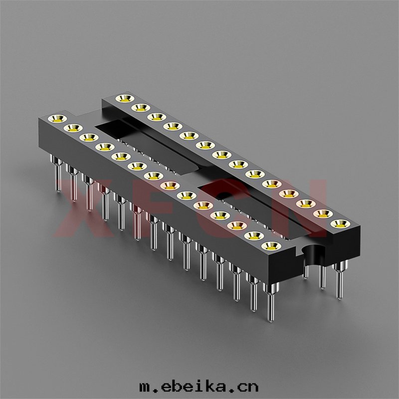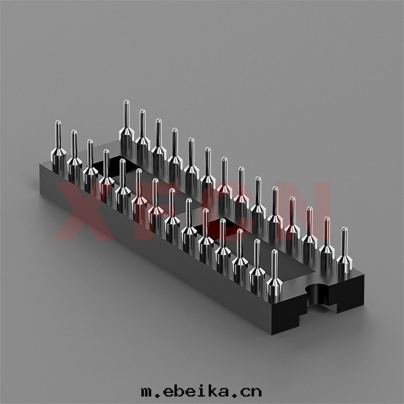 描述:IC插座-2.54mm間(jiān)距,180°,DIP,28位,双(shuāng)排母座,L=7.43mm