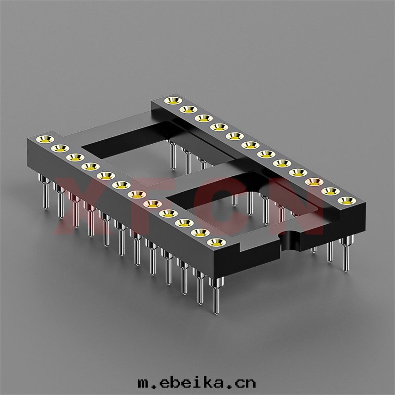 描述:IC插座-2.54mm間(jiān)距,180°,DIP,24位,双(shuāng)排母座,L=7.43mm
