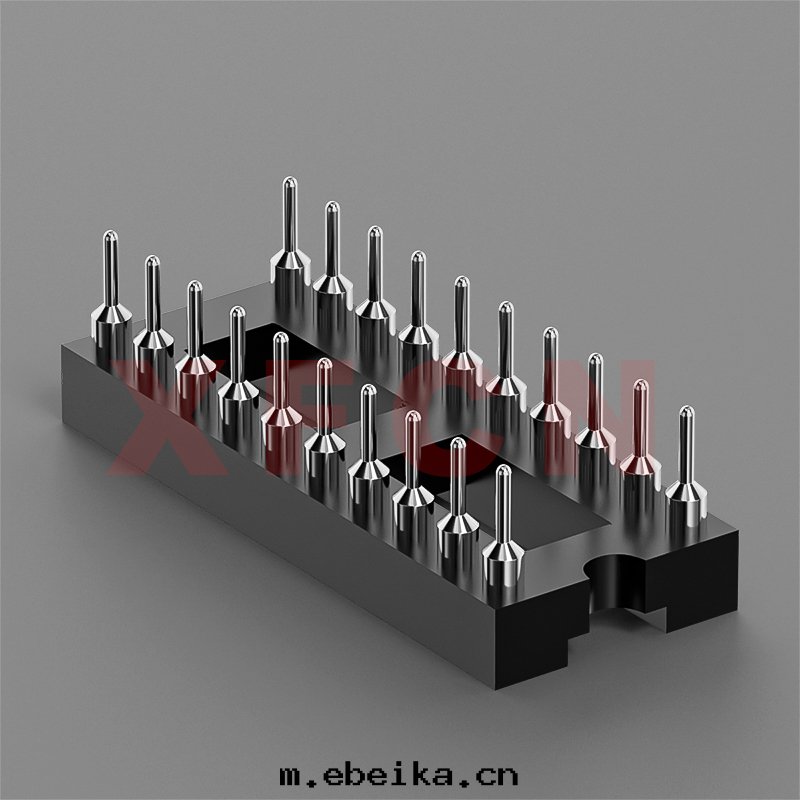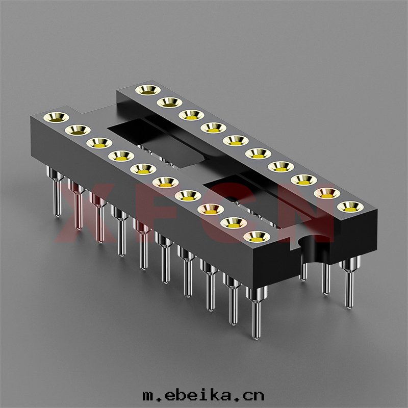 描述:IC插座-2.54mm間(jiān)距,180°,DIP,20位,双(shuāng)排母座,L=7.43mm