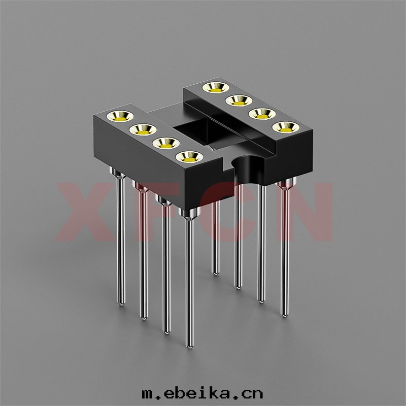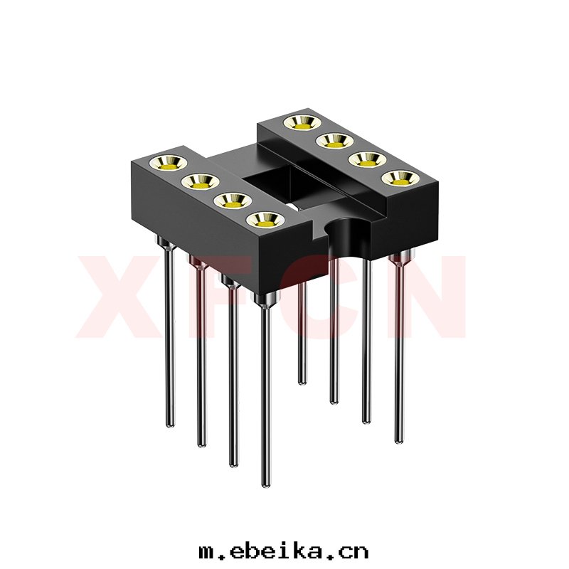 描述:IC插座-2.54mm間(jiān)距,180°,DIP,08位,双(shuāng)排母座,L=13.7mm,直徑0.7mm