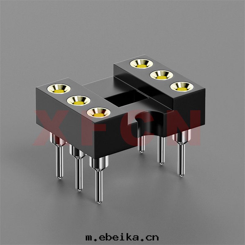 描述:IC插座-2.54mm間(jiān)距,180°,DIP,06位,双(shuāng)排母座,L=7.43mm
