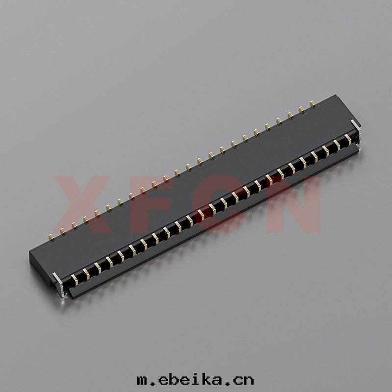 描述:FPC-0.3mm間(jiān)距,卧貼掀蓋式下(xià)接觸,49位,高(gāo)度(dù)1.0mm ,镀金(jīn)