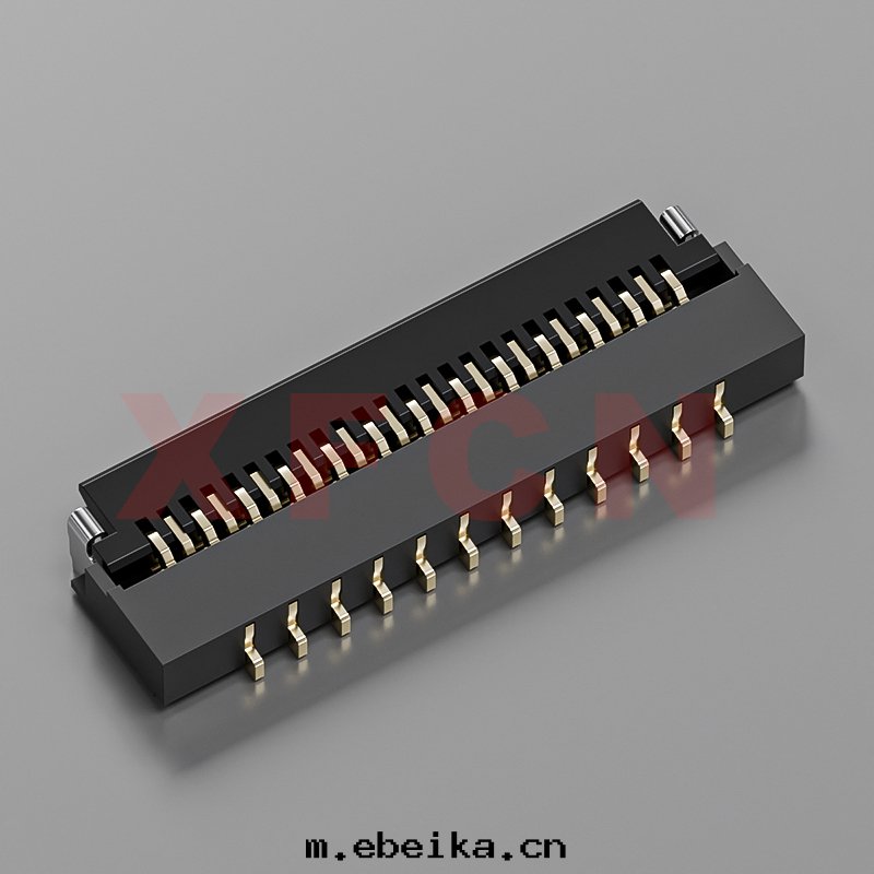 描述:FPC-0.3mm間(jiān)距,卧貼掀蓋式下(xià)接觸,25位,高(gāo)度(dù)1.0mm ,镀金(jīn)