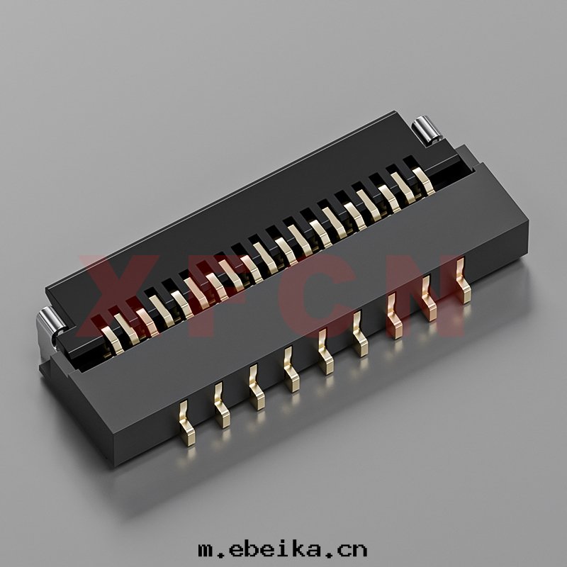 描述:FPC-0.3mm間(jiān)距,卧貼掀蓋式下(xià)接觸,19位,高(gāo)度(dù)1.0mm ,镀金(jīn)