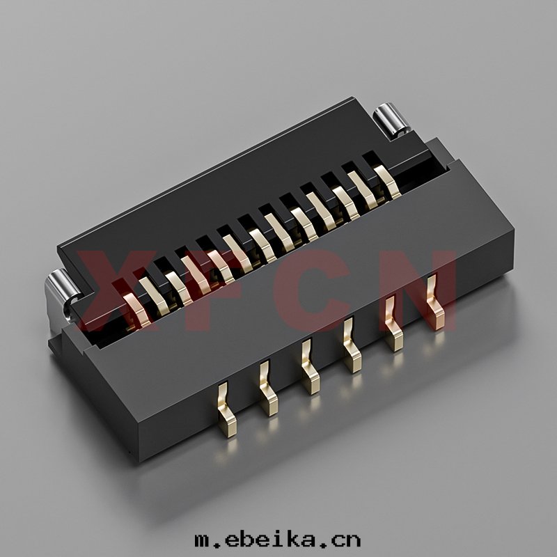 描述:FPC-0.3mm間(jiān)距,卧貼掀蓋式下(xià)接觸,13位,高(gāo)度(dù)1.0mm ,镀金(jīn)