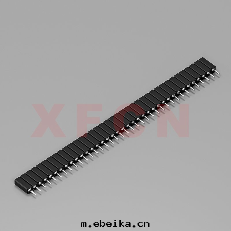 描述:圆(yuán)孔排母-2.54mm間(jiān)距,180°,DIP,37位,單排母座,H=7.0mm