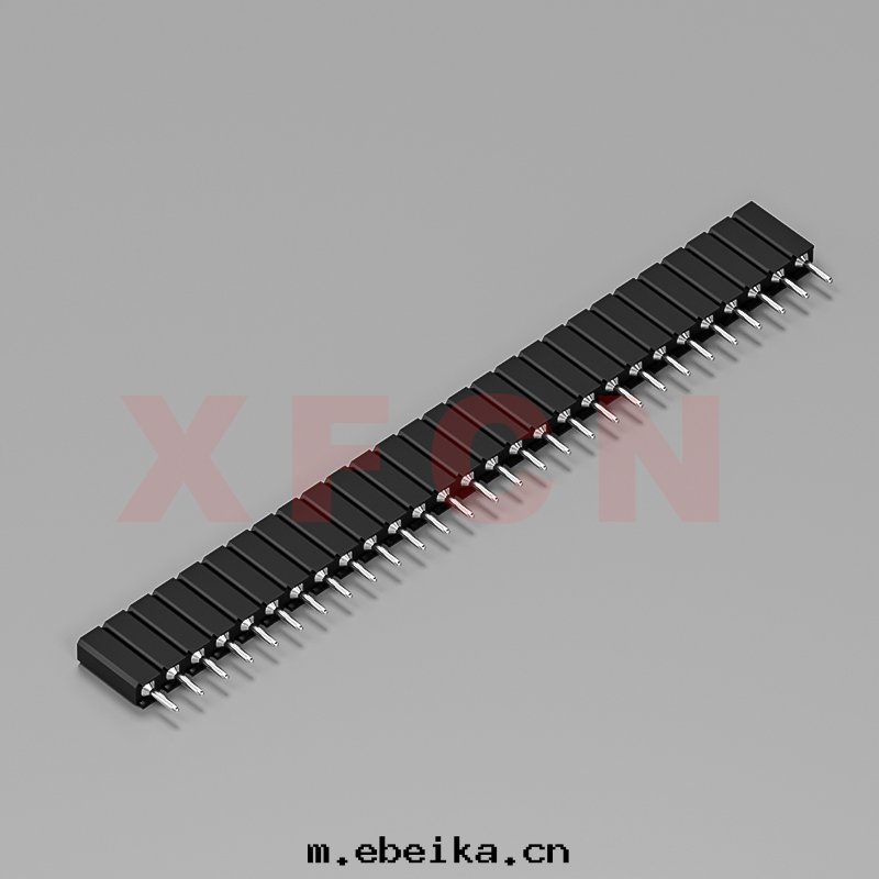 描述:圆(yuán)孔排母-2.54mm間(jiān)距,180°,DIP,28位,單排母座,H=7.0mm