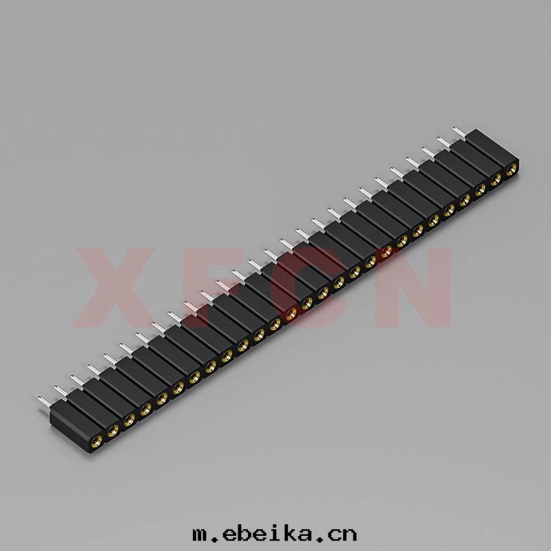 描述:圆(yuán)孔排母-2.54mm間(jiān)距,180°,DIP,27位,單排母座,H=7.0mm