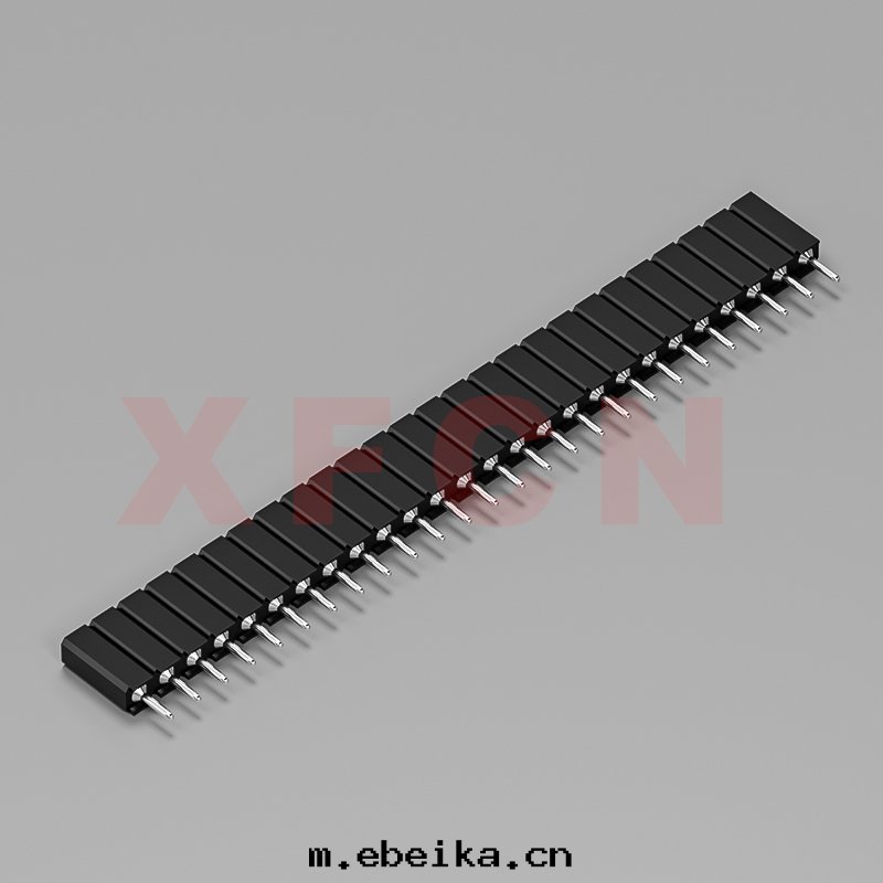 描述:圆(yuán)孔排母-2.54mm間(jiān)距,180°,DIP,26位,單排母座,H=7.0mm