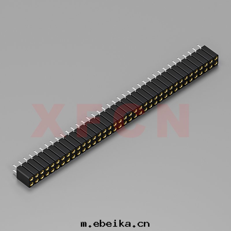 描述:圆(yuán)孔排母-2.54mm間(jiān)距,180°,DIP,74位,双(shuāng)排母座,H=7.0mm