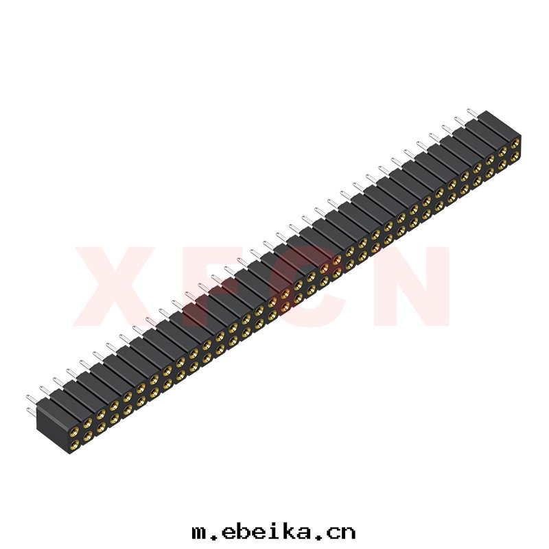 描述:圆(yuán)孔排母-2.54mm間(jiān)距,180°,DIP,70位,双(shuāng)排母座,H=7.0mm