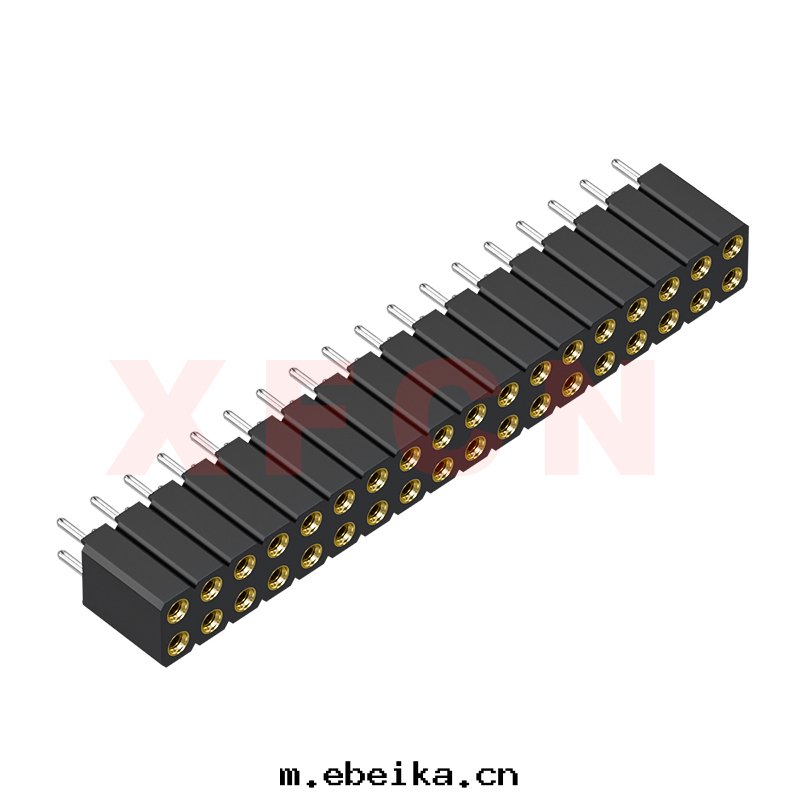 描述:圆(yuán)孔排母-2.54mm間(jiān)距,180°,DIP,36位,双(shuāng)排母座,H=7.0mm