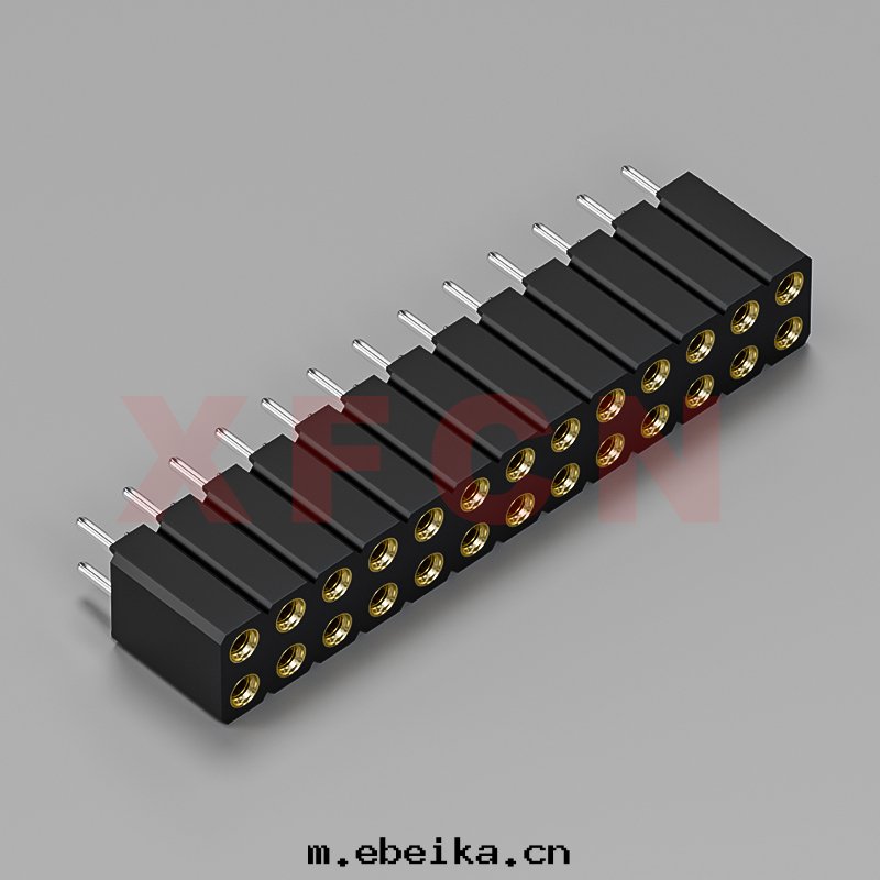 描述:圆(yuán)孔排母-2.54mm間(jiān)距,180°,DIP,26位,双(shuāng)排母座,H=7.0mm