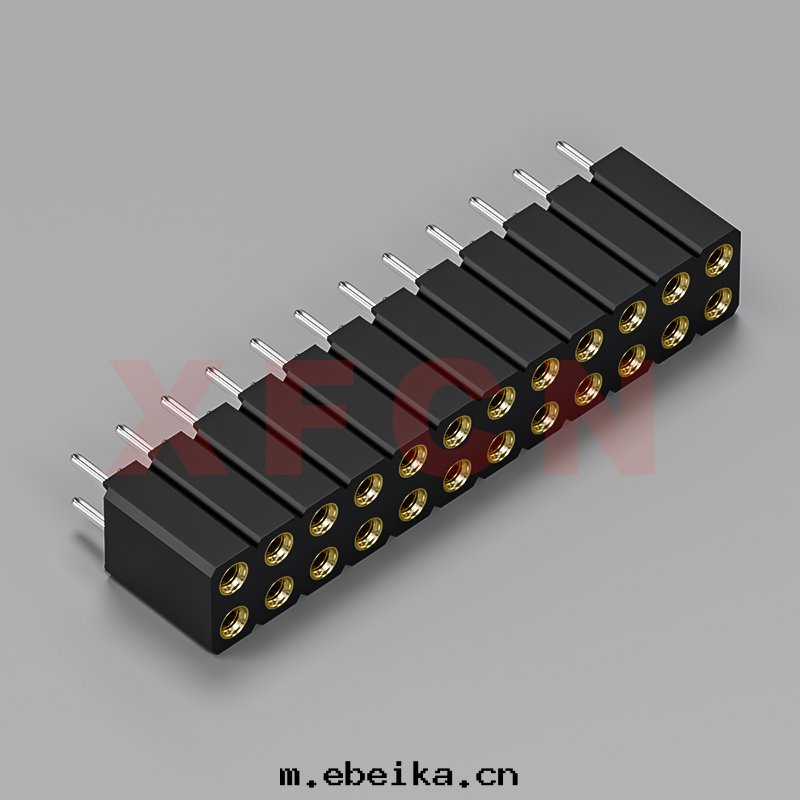 描述:圆(yuán)孔排母-2.54mm間(jiān)距,180°,DIP,24位,双(shuāng)排母座,H=7.0mm