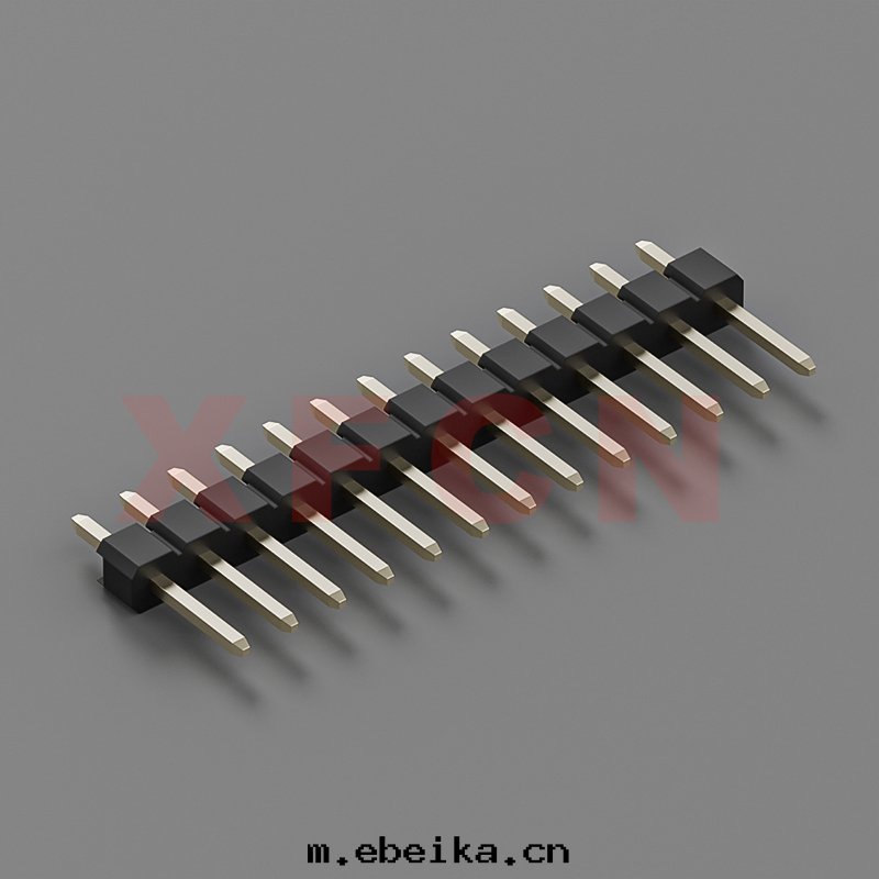 描述:排針(zhēn)-2.54mm間(jiān)距,180°,DIP,13位,單排單塑