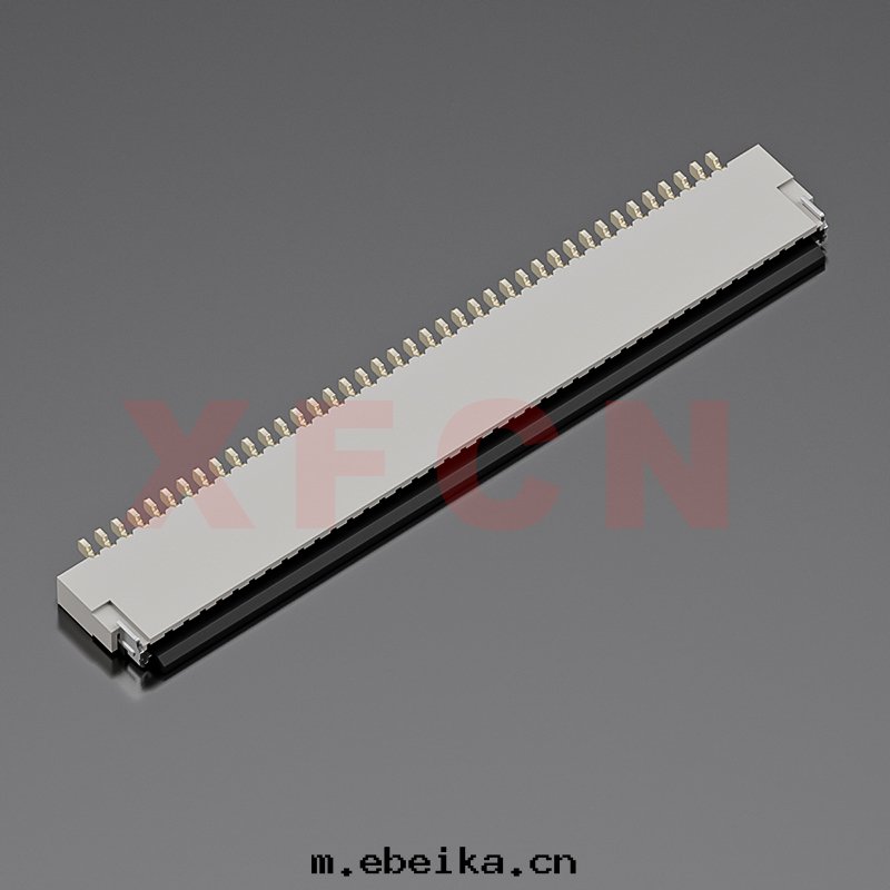 描述:FPC-0.5mm間(jiān)距,卧貼掀蓋式下(xià)接觸,40位,高(gāo)度(dù)1.0mm ,镀金(jīn)