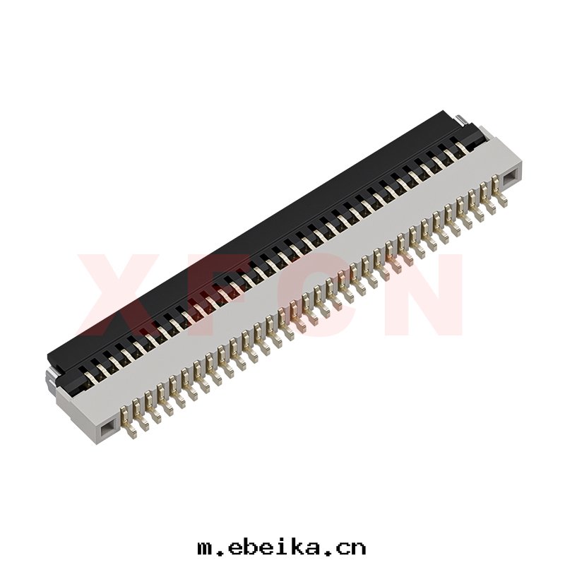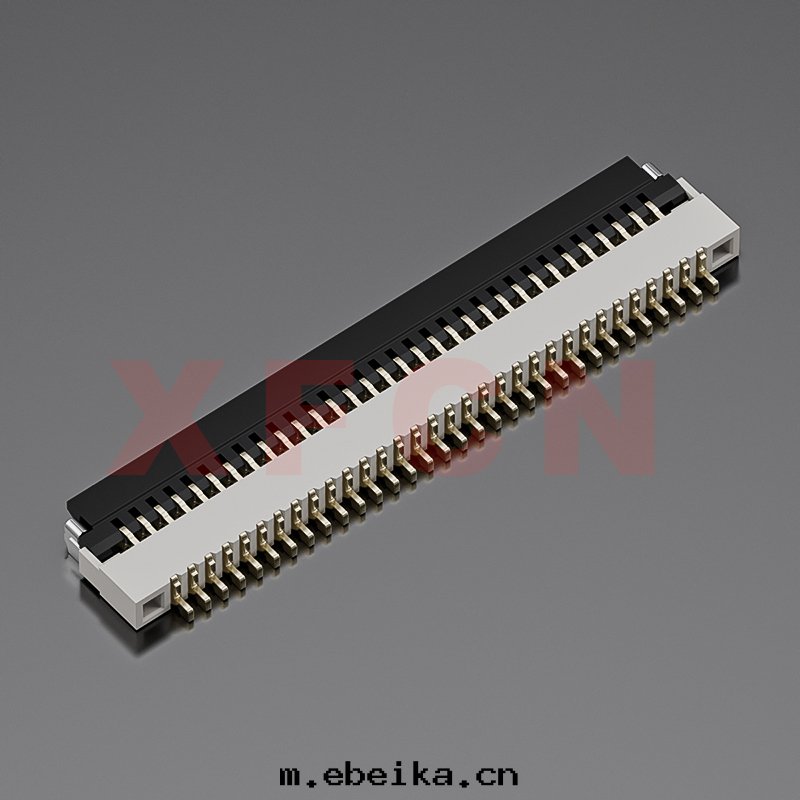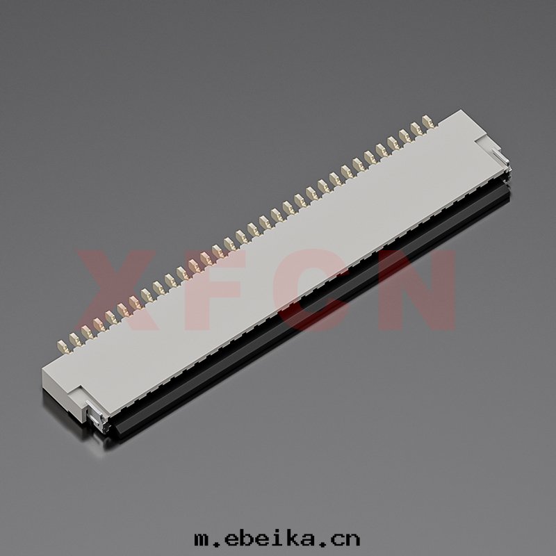 描述:FPC-0.5mm間(jiān)距,卧貼掀蓋式下(xià)接觸,32位,高(gāo)度(dù)1.0mm ,镀金(jīn)