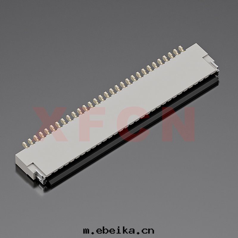 描述:FPC-0.5mm間(jiān)距,卧貼掀蓋式下(xià)接觸,30位,高(gāo)度(dù)1.0mm ,镀金(jīn)