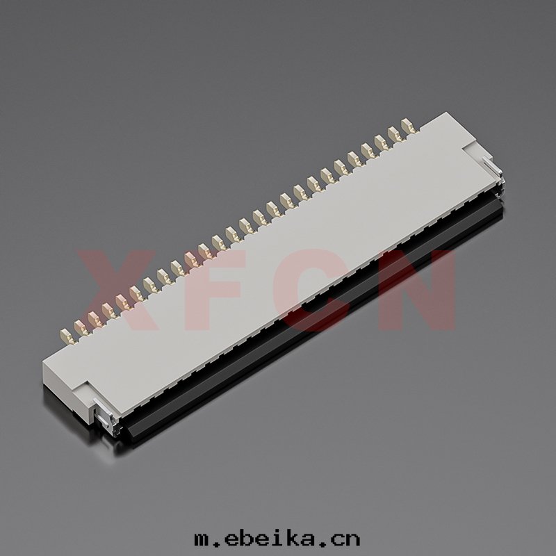描述:FPC-0.5mm間(jiān)距,卧貼掀蓋式下(xià)接觸,26位,高(gāo)度(dù)1.0mm ,镀金(jīn)