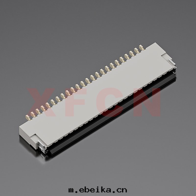 描述:FPC-0.5mm間(jiān)距,卧貼掀蓋式下(xià)接觸,24位,高(gāo)度(dù)1.0mm ,镀金(jīn)