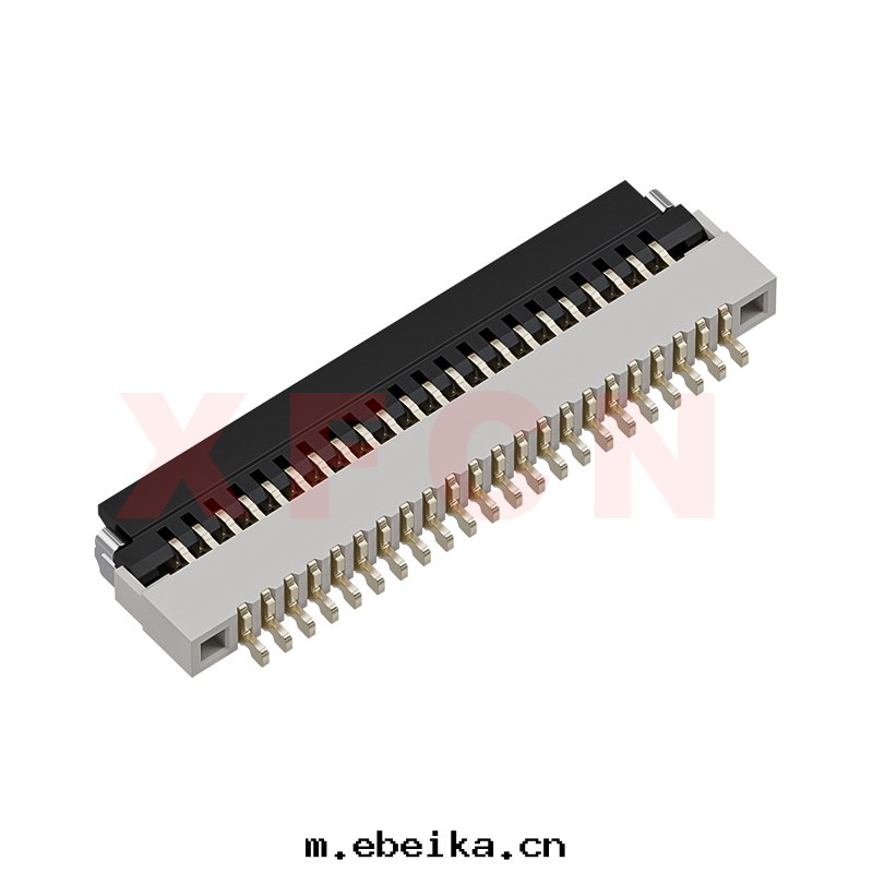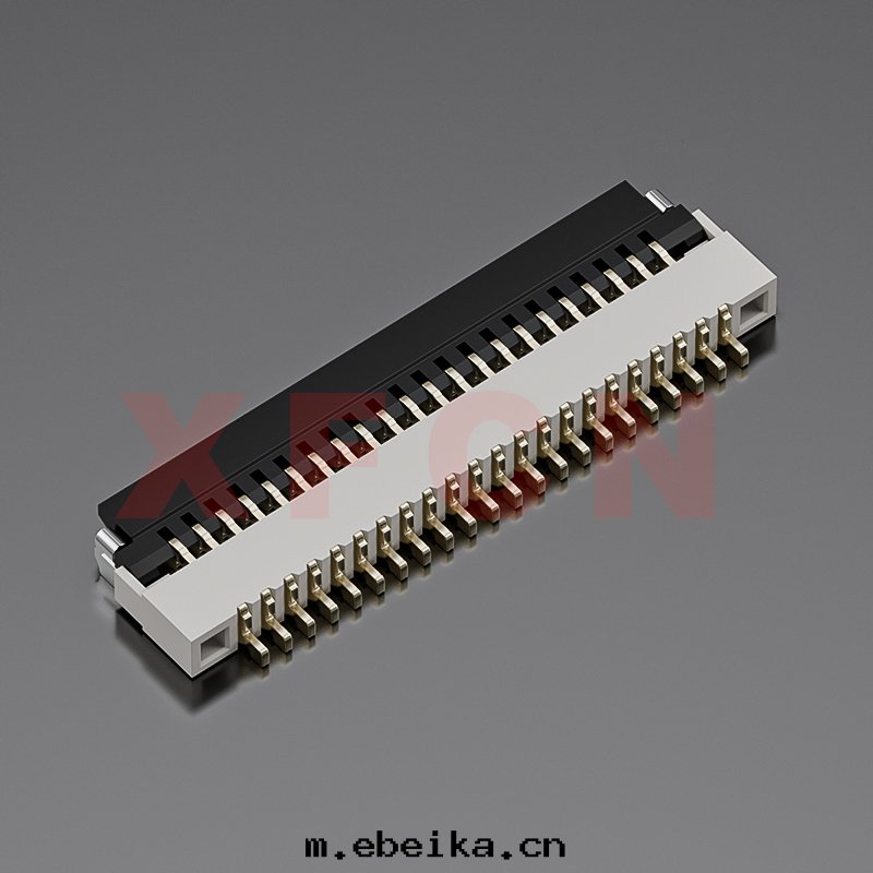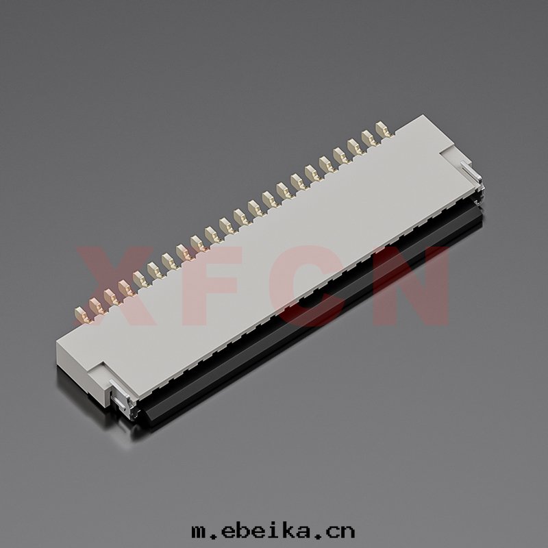 描述:FPC-0.5mm間(jiān)距,卧貼掀蓋式下(xià)接觸,22位,高(gāo)度(dù)1.0mm ,镀金(jīn)