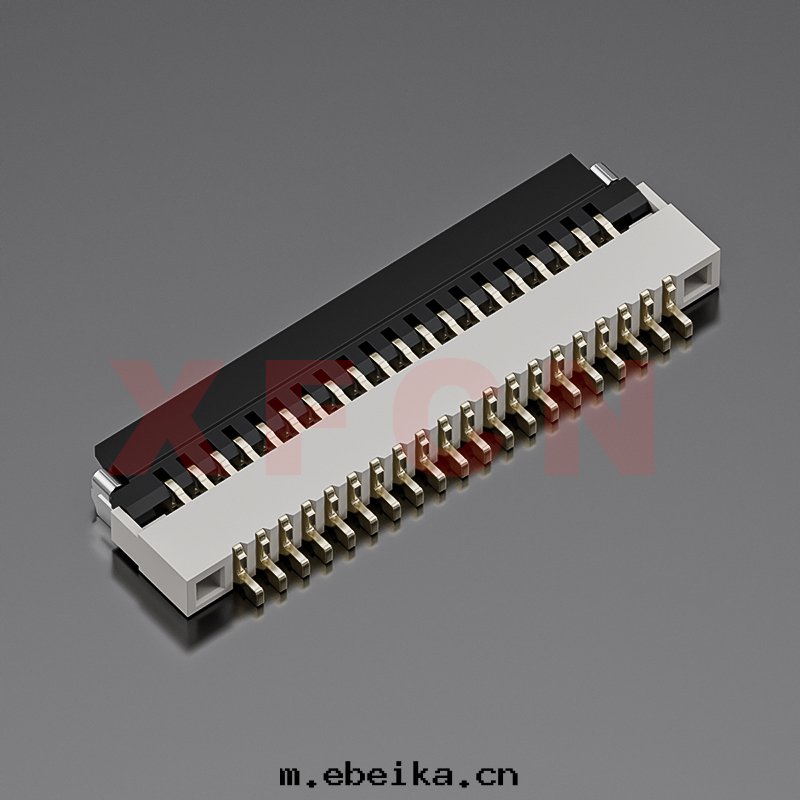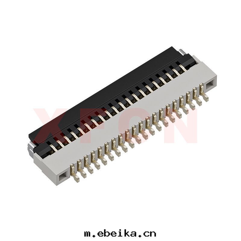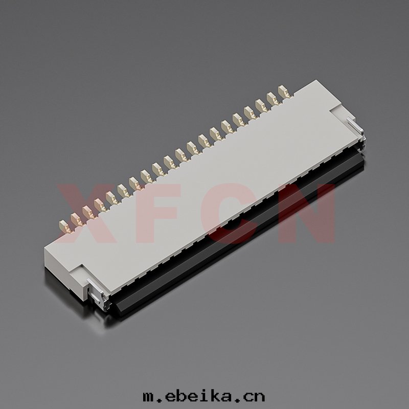 描述:FPC-0.5mm間(jiān)距,卧貼掀蓋式下(xià)接觸,20位,高(gāo)度(dù)1.0mm ,镀金(jīn)