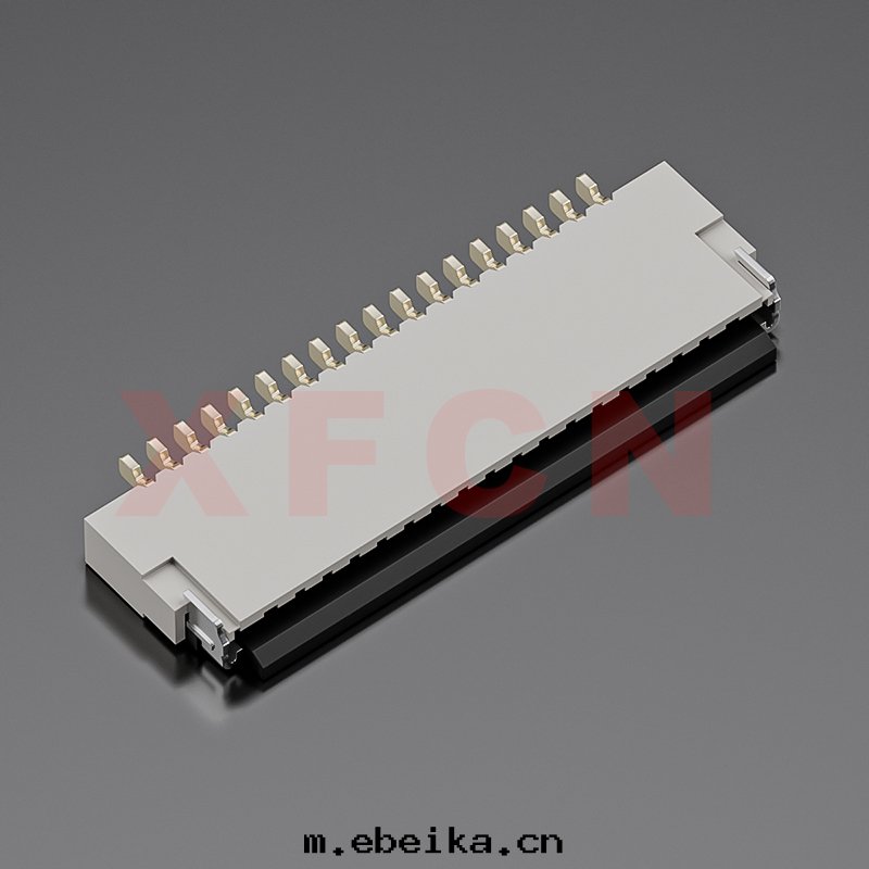 描述:FPC-0.5mm間(jiān)距,卧貼掀蓋式下(xià)接觸,18位,高(gāo)度(dù)1.0mm ,镀金(jīn)