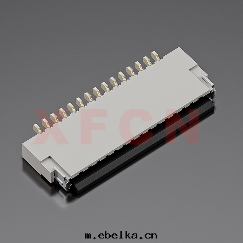 描述:FPC-0.5mm間(jiān)距,卧貼掀蓋式下(xià)接觸,15位,高(gāo)度(dù)1.0mm ,镀金(jīn)