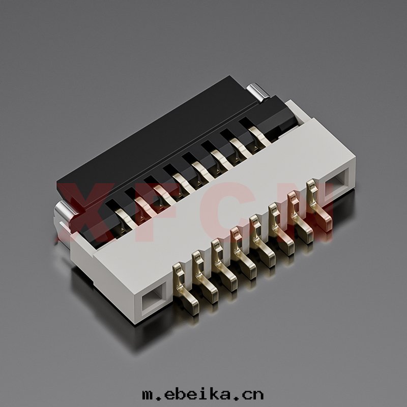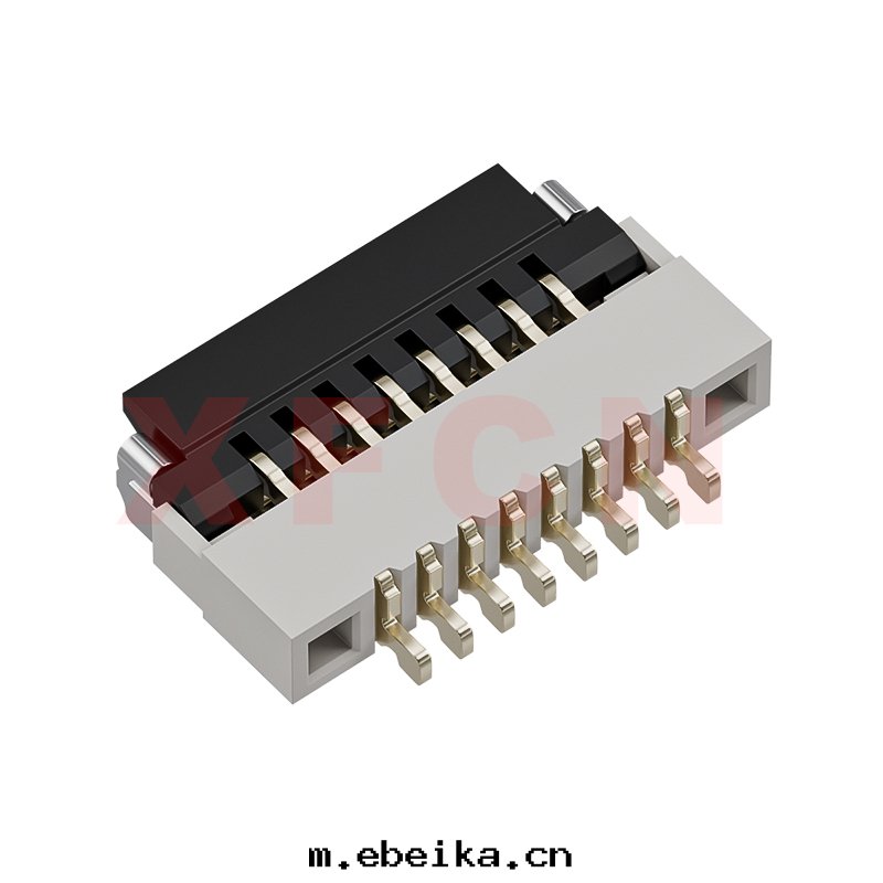 描述:FPC-0.5mm間(jiān)距,卧貼掀蓋式下(xià)接觸,08位,高(gāo)度(dù)1.0mm ,镀金(jīn)