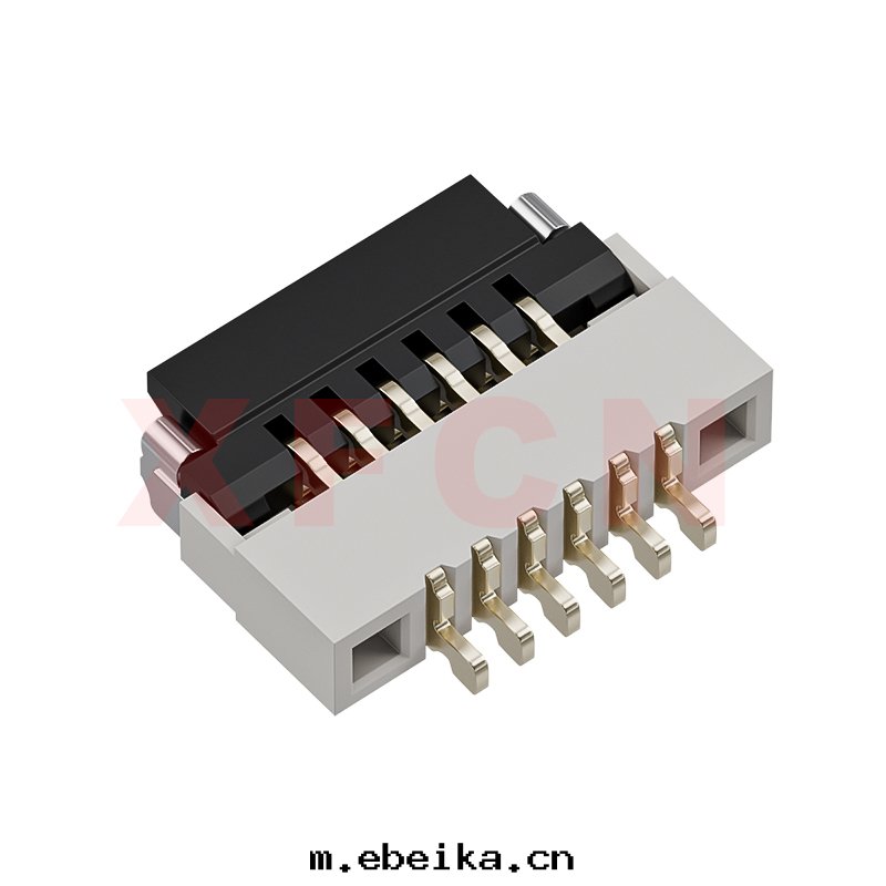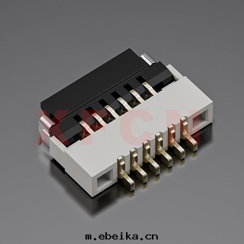 描述:FPC-0.5mm間(jiān)距,卧貼掀蓋式下(xià)接觸,06位,高(gāo)度(dù)1.0mm ,镀金(jīn)
