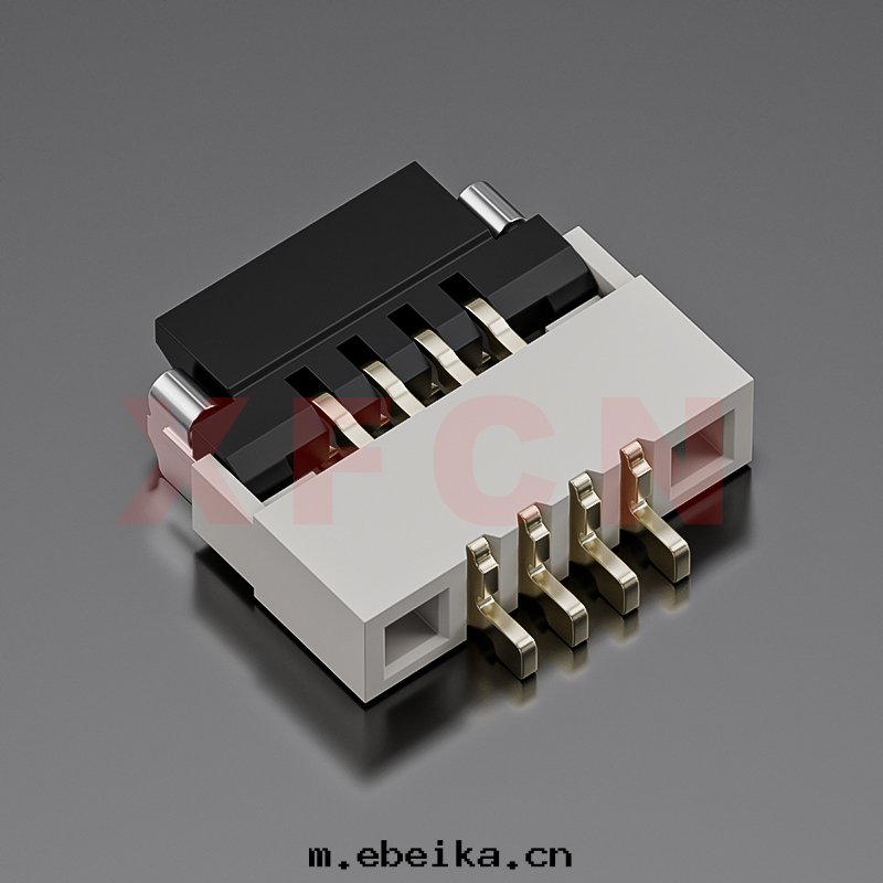 描述:FPC-0.5mm間(jiān)距,卧貼掀蓋式下(xià)接觸,04位,高(gāo)度(dù)1.0mm ,镀金(jīn)
