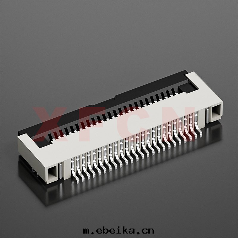 描述:FPC-0.5mm間(jiān)距,卧貼掀蓋式下(xià)接觸,24位,高(gāo)度(dù)2.0mm