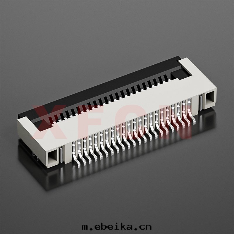 描述:FPC-0.5mm間(jiān)距,卧貼掀蓋式下(xià)接觸,22位,高(gāo)度(dù)2.0mm