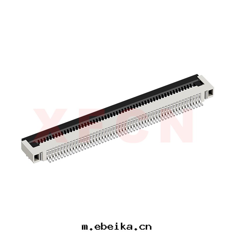 描述:FPC-0.5mm間(jiān)距,卧貼掀蓋式下(xià)接觸,54位,高(gāo)度(dù)1.5mm