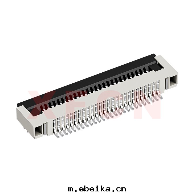 描述:FPC-0.5mm間(jiān)距,卧貼掀蓋式下(xià)接觸,26位,高(gāo)度(dù)1.5mm