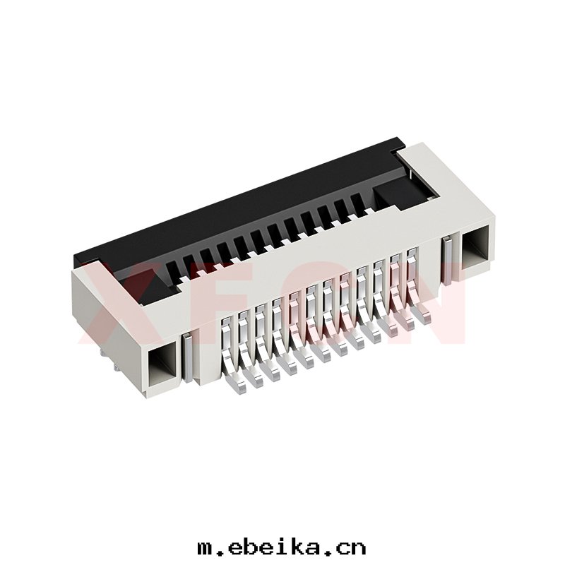 描述:FPC-0.5mm間(jiān)距,卧貼掀蓋式下(xià)接觸,12位,高(gāo)度(dù)1.5mm