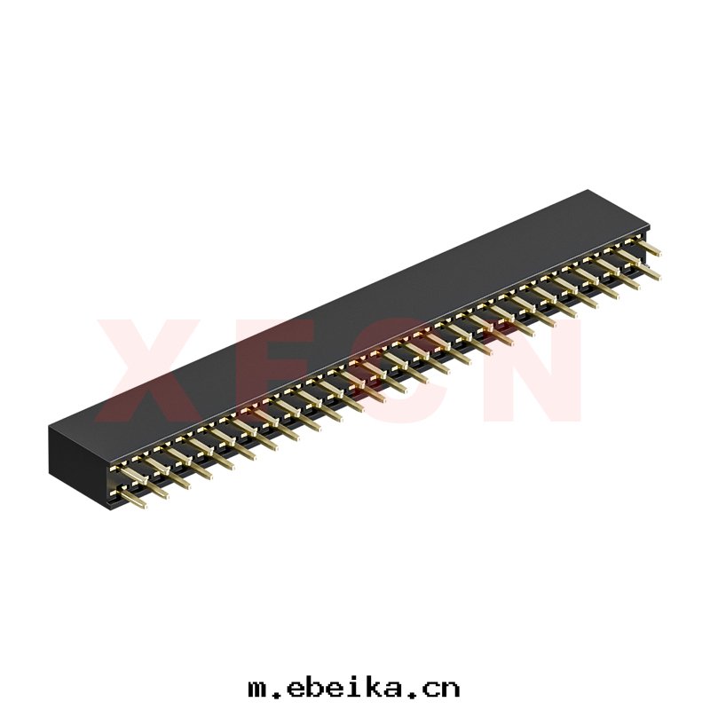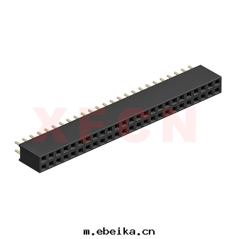 描述:排母-2.54mm間(jiān)距,180°,DIP,50位,双(shuāng)排,PBT,H=8.5mm