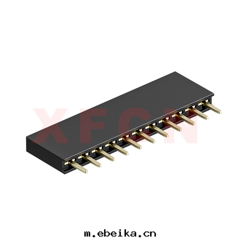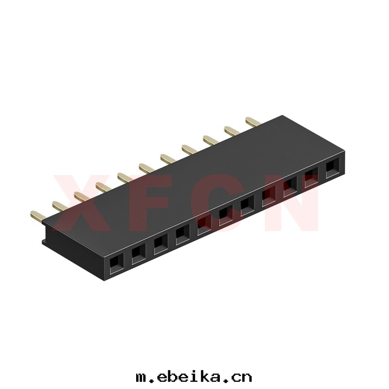 描述:排母-2.54mm間(jiān)距,180°,DIP,11位,單排,PBT,H=8.5mm