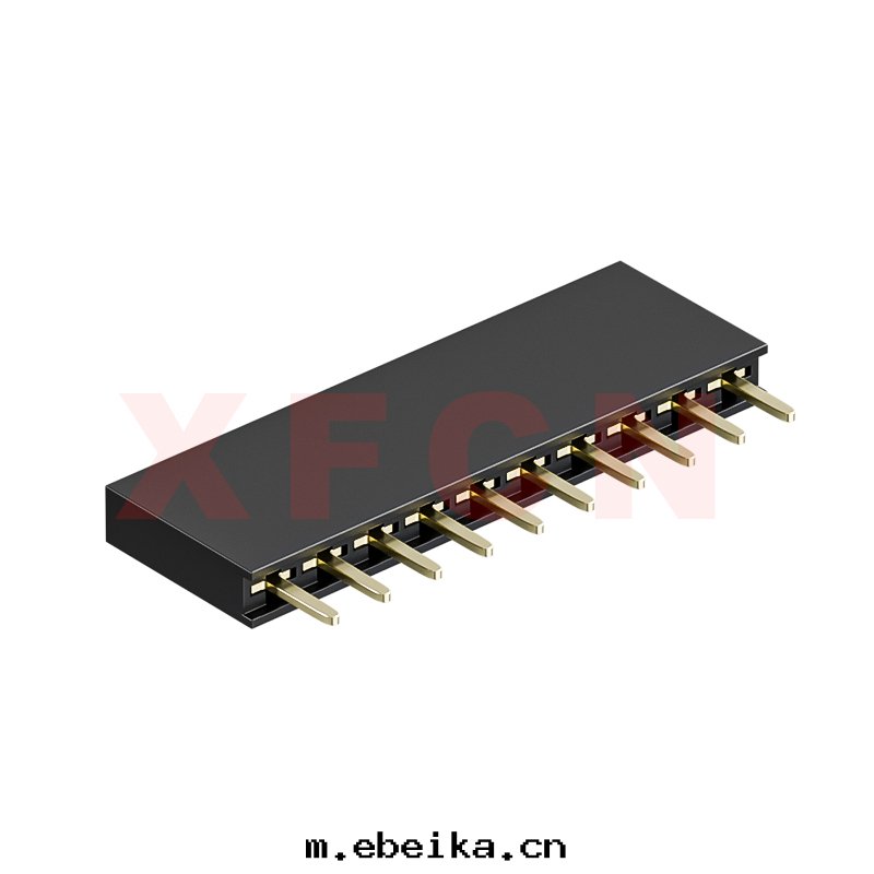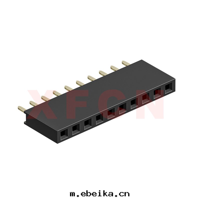 描述:排母-2.54mm間(jiān)距,180°,DIP,10位,單排,PBT,H=8.5mm