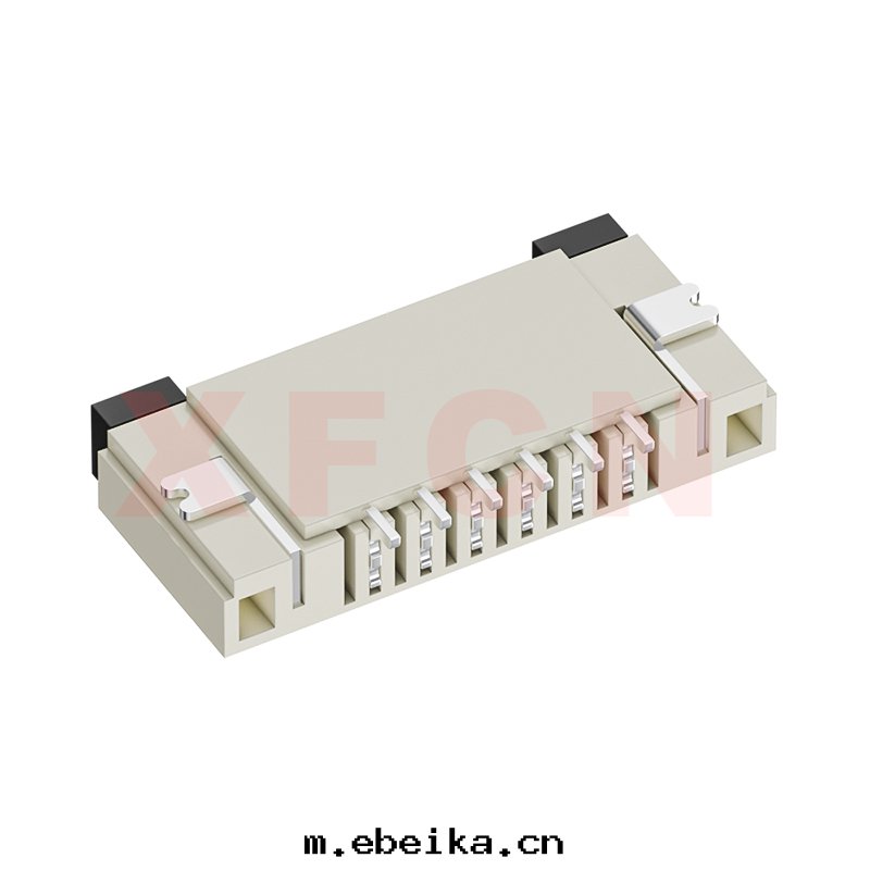 描述:FPC-1.0mm間(jiān)距,卧貼掀蓋式下(xià)接觸,06位,高(gāo)度(dù)2.0mm