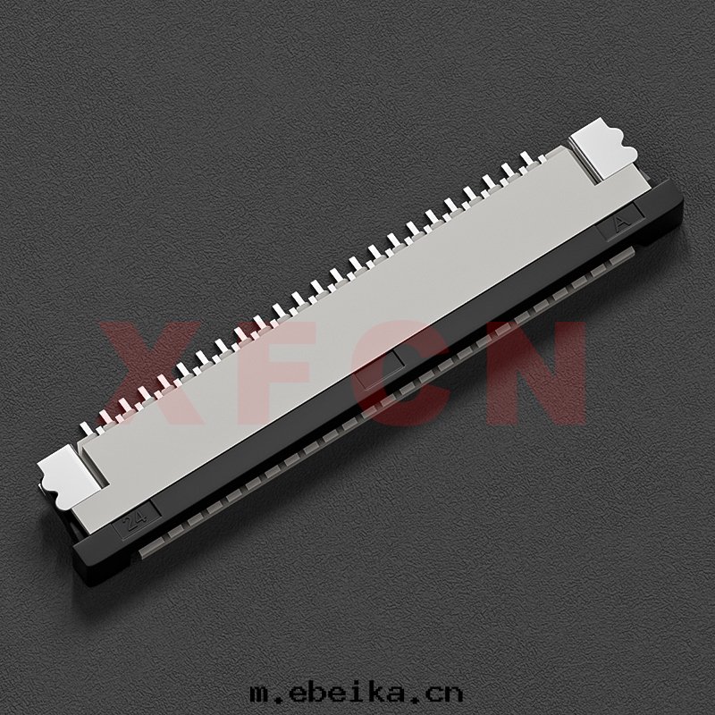 描述:FPC-1.0mm間(jiān)距,卧貼拉拔式下(xià)接觸,24位,高(gāo)度(dù)2.5mm,
