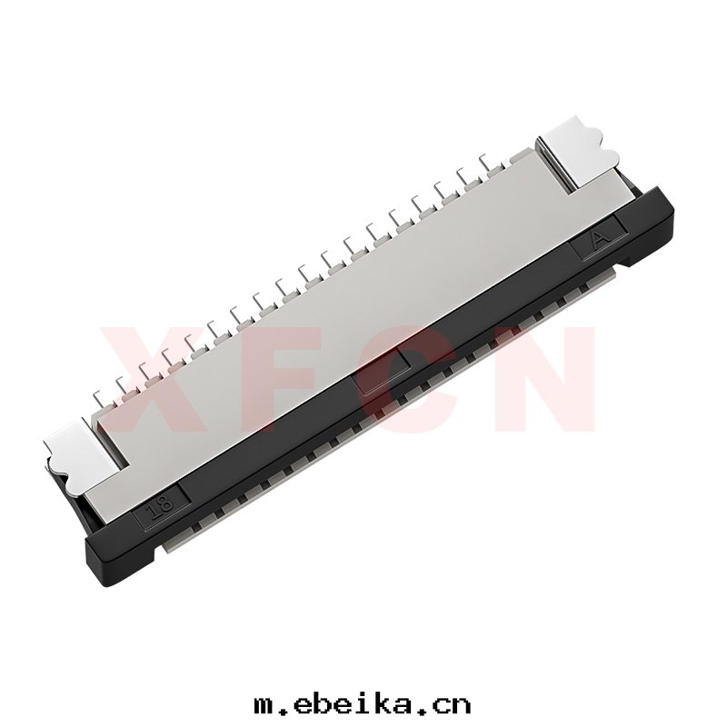 描述:FPC-1.0mm間(jiān)距,卧貼拉拔式下(xià)接觸,18位,高(gāo)度(dù)2.5mm,