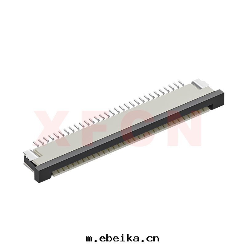 描述:FPC-1.0mm間(jiān)距,卧貼拉拔式上(shàng)接觸,30位,高(gāo)度(dù)2.5mm,