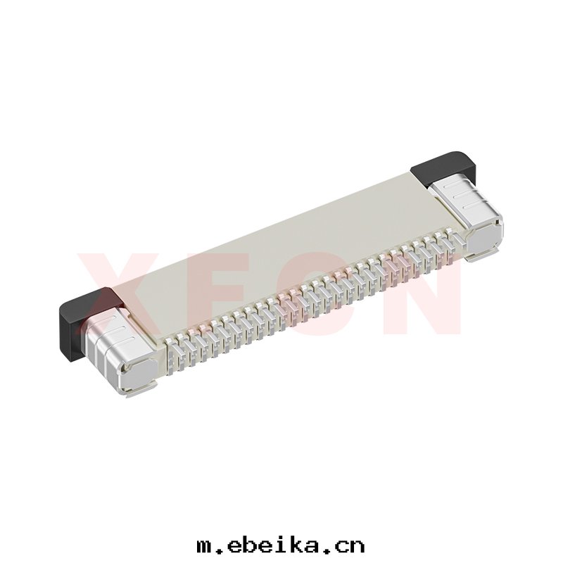 描述:FPC-0.5mm間(jiān)距,卧貼拉拔式下(xià)接觸,26位,高(gāo)度(dù)2.0mm