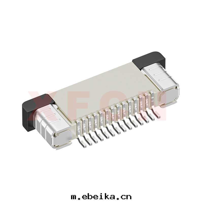 描述:FPC-0.5mm間(jiān)距,卧貼拉拔式上(shàng)接觸,14位,高(gāo)度(dù)2.0mm
